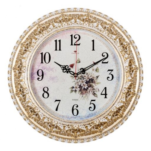 Корпус белый с золотом "Полевые цветы" d38см, механизм плавный с тихим ходом