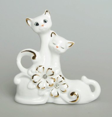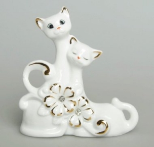 Статуэтка Кошка Валентинка h17см гжель