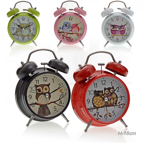 Будильник 16см мет. 6040-5 Совы