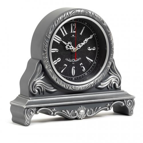 Часы настольные 33,5х29 см, корпус темно-серый с серебром "Классика", механизм плавный с тихим ходом