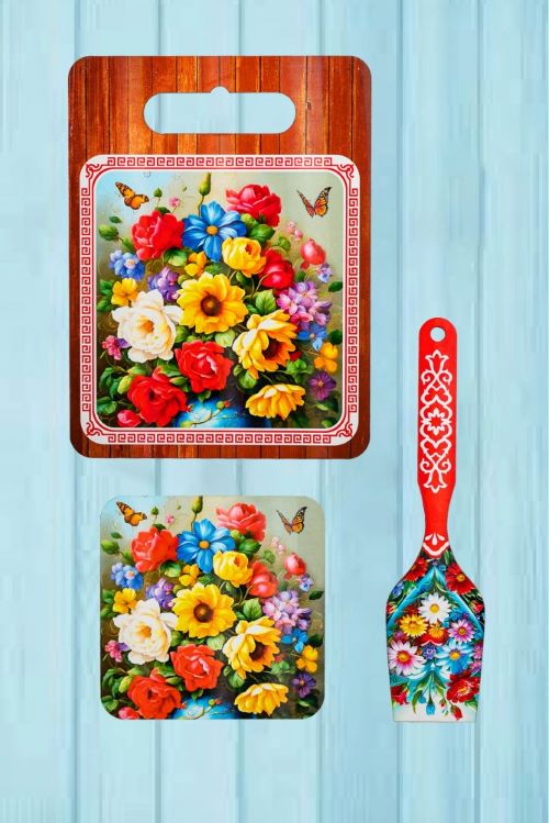 Доска фанера 18х24см, лопатка, подставка Цветы